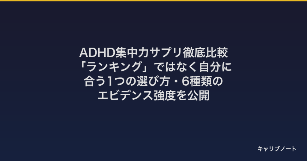 ADHD集中力サプリ徹底比較!ランキングではなく自分に合う1つの選び方|6種類のエビデンスから解説