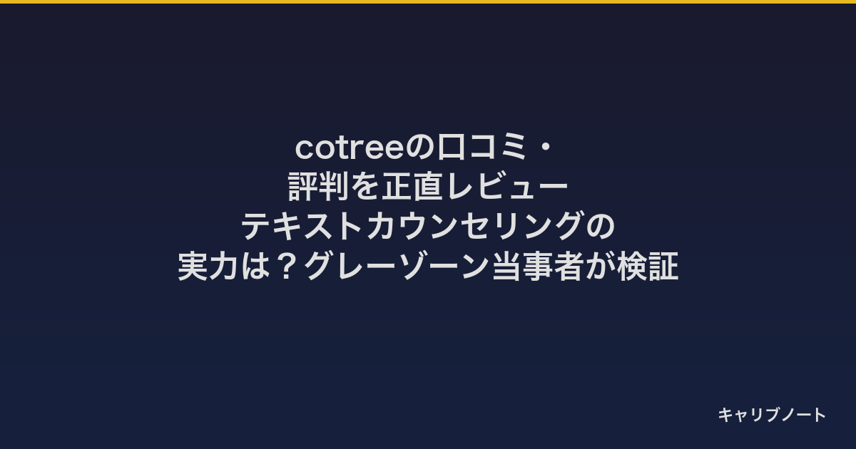 この記事では、オンラインカウンセリング「cotree(コトリー)」の口コミ・評判をグレーゾーン当事者の筆者が検証します。テキストカウンセリングの実体験、料金の選び方、Kimochiとのコスト比較、そして「発達障害」カテゴリでのカウンセラー検索の実用性をまとめました。