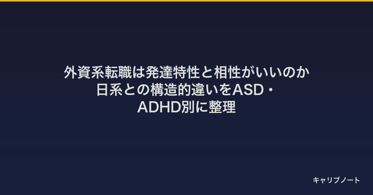 ただし、日系と外資の間には構造的な違いがあり、その違いが発達特性と噛み合う場面があるのも事実です。重要なのは「向いている/向いていない」の二択ではなく、「日系と外資の何がどう違うのか」を構造で見ることです。