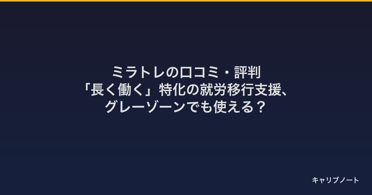 まとめ|ミラトレは「長く働き続ける」ための選択肢